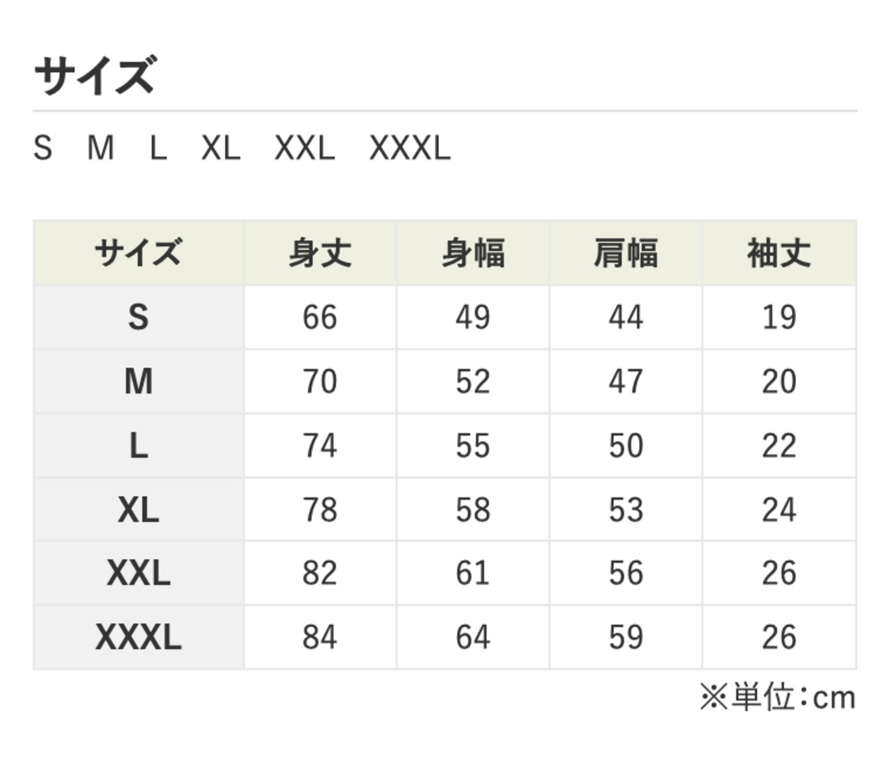 サイズ 添付画像を参照(XXL・XXXLの取扱はございません)