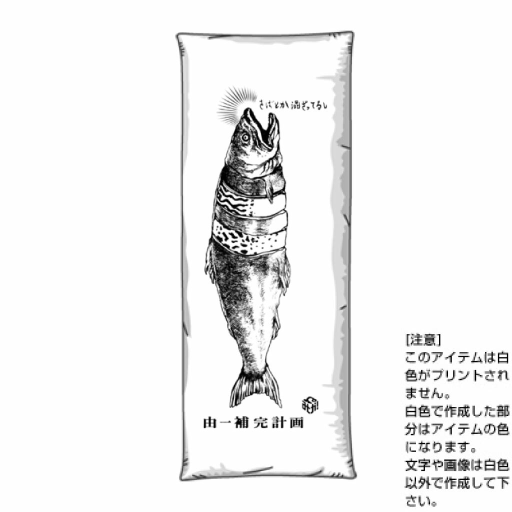 東京藝術大学所蔵の名画、高橋由一の「鮭」(重要文化財)をモチーフに、由一によって切り取られてしまった(?)鮭の一部を、スーパーで買ってきた切り身で"補完"するという「由一補完計画」をテーマに、ねがみ氏によるオリジナルイラストをデザインしています。