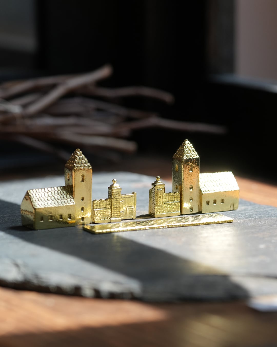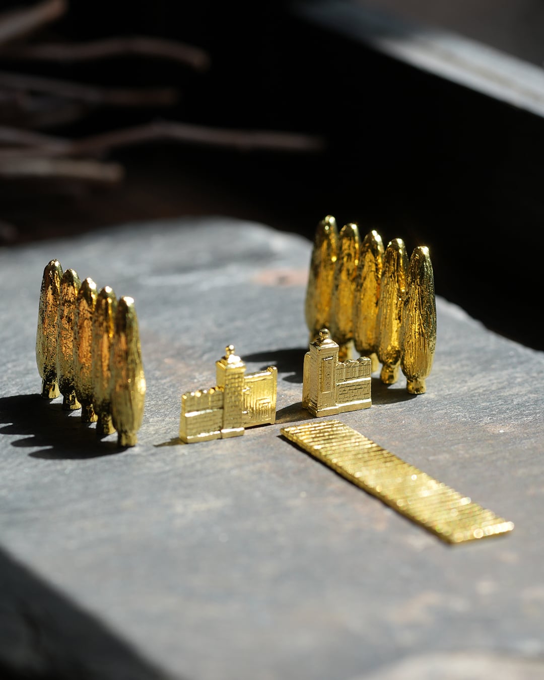 東京藝術大学の正門をモチーフにした作品、「百年の門」。多くの学生や未来のアーティストたちを迎え入れ、そして送り出してきたこの門をモチーフに、真鍮製のオブジェにしました。既存の「どこか遠くにある街」シリーズにも合わせられるサイズになっています。